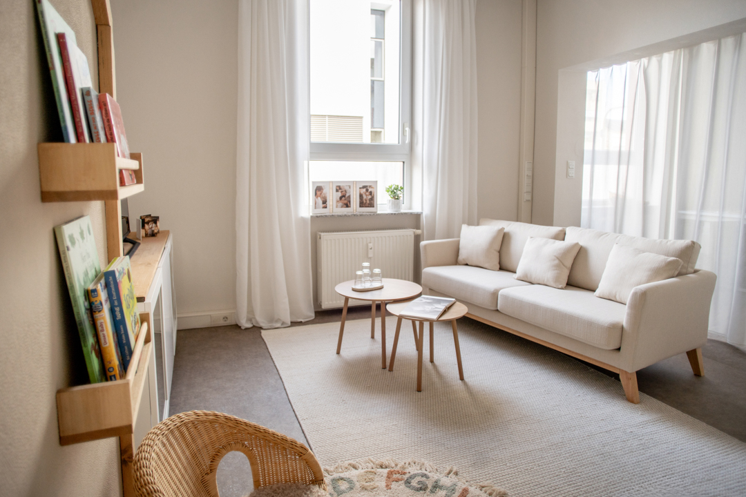 Helles Licht, natürliche Farben, gemütliche Texturen und viel Platz für Nähe und Bewegung: Das Studio ist so gestaltet, dass es sich eher wie ein Wohnzimmer anfühlt, als wie ein klassisches Fotostudio.