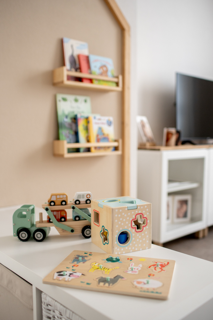 Eine kleine Ecke nur für die Kinder – mit Spielsachen, Büchern und Dingen, die Neugier wecken.